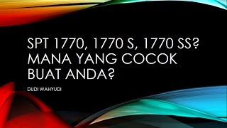 SPT Tahunan untuk Wajib Pajak orang pribadi terdiri dari formulir SPT Tahunan 1770, formulir 1770 S dan formulir 1770 SS. Jenis SPT yang mana yang harus ...